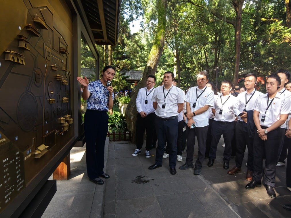 在武侯祠黨員活動室,公司創(chuàng)新中心技術(shù)人員講解展示了由川投數(shù)科精心打造的武侯祠博物館首個時空伴游數(shù)智人“小諸葛”以及辦學(xué)伴游數(shù)智玩偶“小黑貓”等前沿技術(shù)產(chǎn)品在成都武侯祠博物館的應(yīng)用及成果,通過虛實共生的文旅新模式,將學(xué)習(xí)歷史文化與提升公司科技創(chuàng)新發(fā)展力結(jié)合起來,內(nèi)化于心,外化于形,進一步堅定國企科技人的使命與責(zé)任,深刻樹立“以儉修身,以身許國”的奮斗目標。